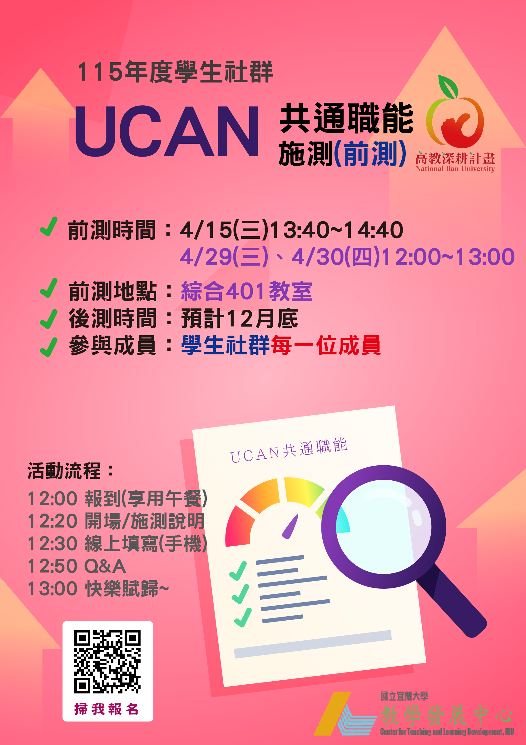 【高深分項二】學生社群「UCAN共通職能施測」來囉~~請所有社群成員線上報名選擇梯次!!